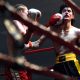 Ten fighters participated in the first Blood of Heroes of the year at the Sheridan County Fairgrounds Exhibit Hall Saturday, Jan. 10, 2026. Anthony Fornelli blocks...