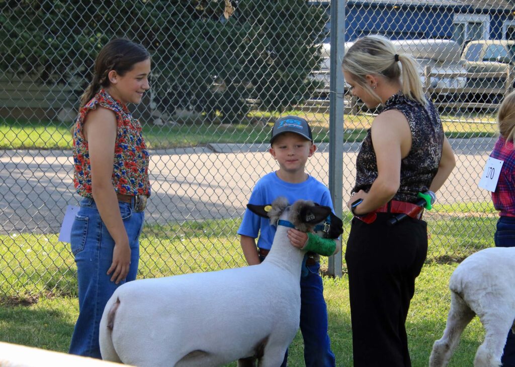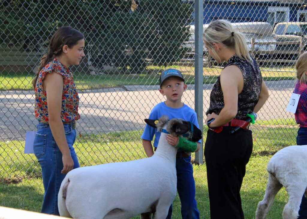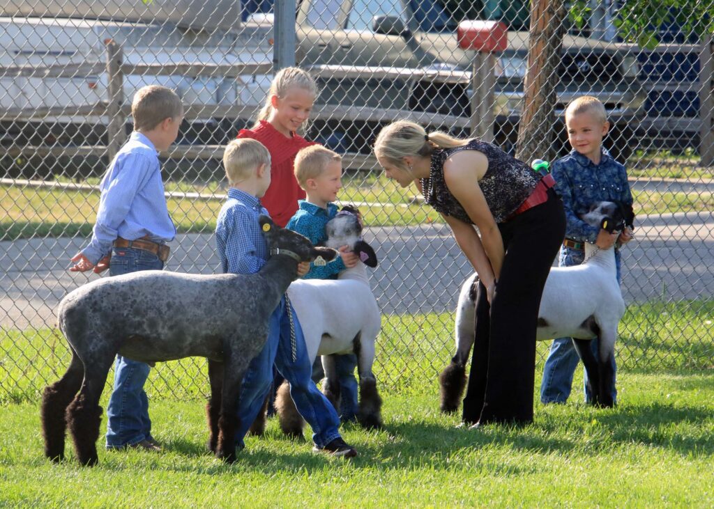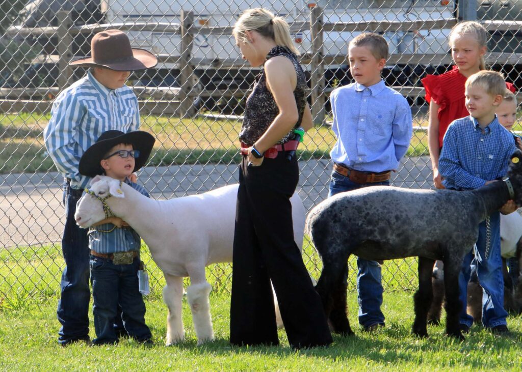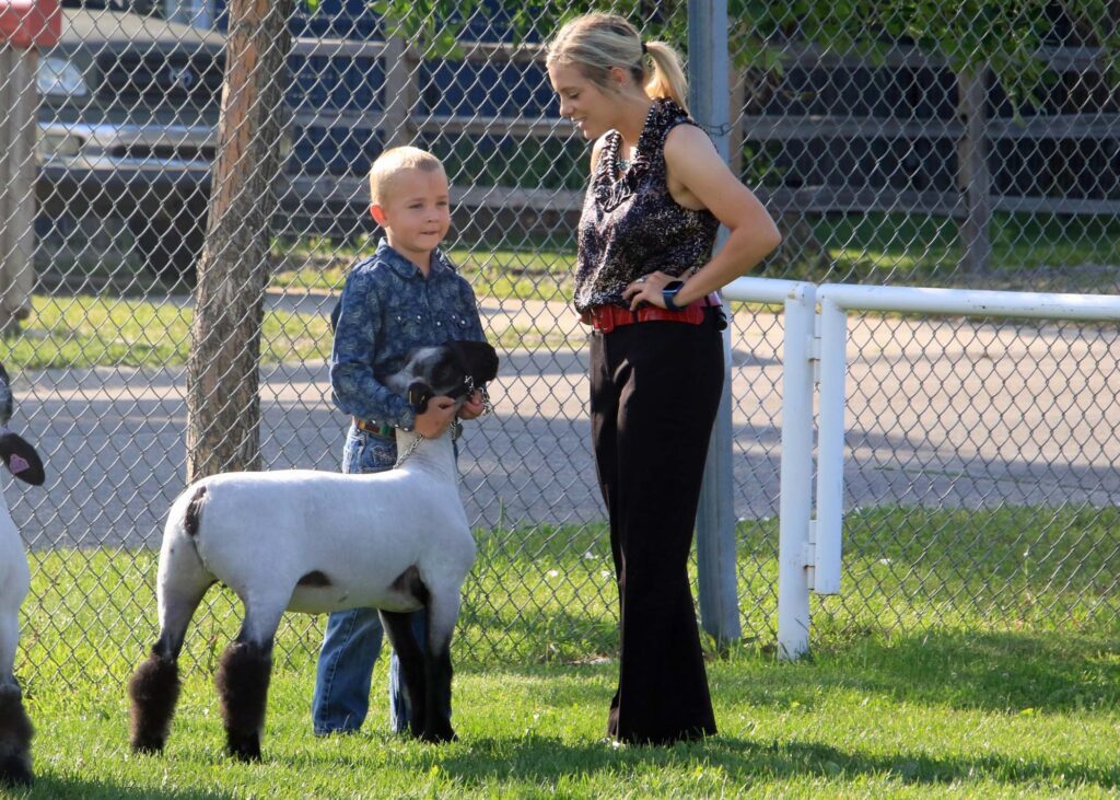 Each of the species at Sheridan County Fair has some form of Cloverbud or Pee Wee class. This allows youngsters that are not quite old enough to show in 4-H a chance to “borrow” a critter from a 4-H member or older sibling, and enter the show ring just like the big kids. They get a chance to walk the show ring and show an animal…generally with a little help from 4_H members…..and even get questioned by the judge. Here are some shots from the Sheep Show Cloverbud class.
