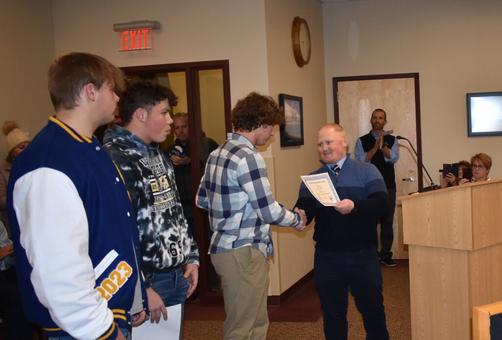 The Sheridan Bronc Football team took the 4A state championship, and Jeff Mowry was recognized as Coach of the Year. Garnhart talked about the players who were awarded good sportsmanship awards during the fall season.