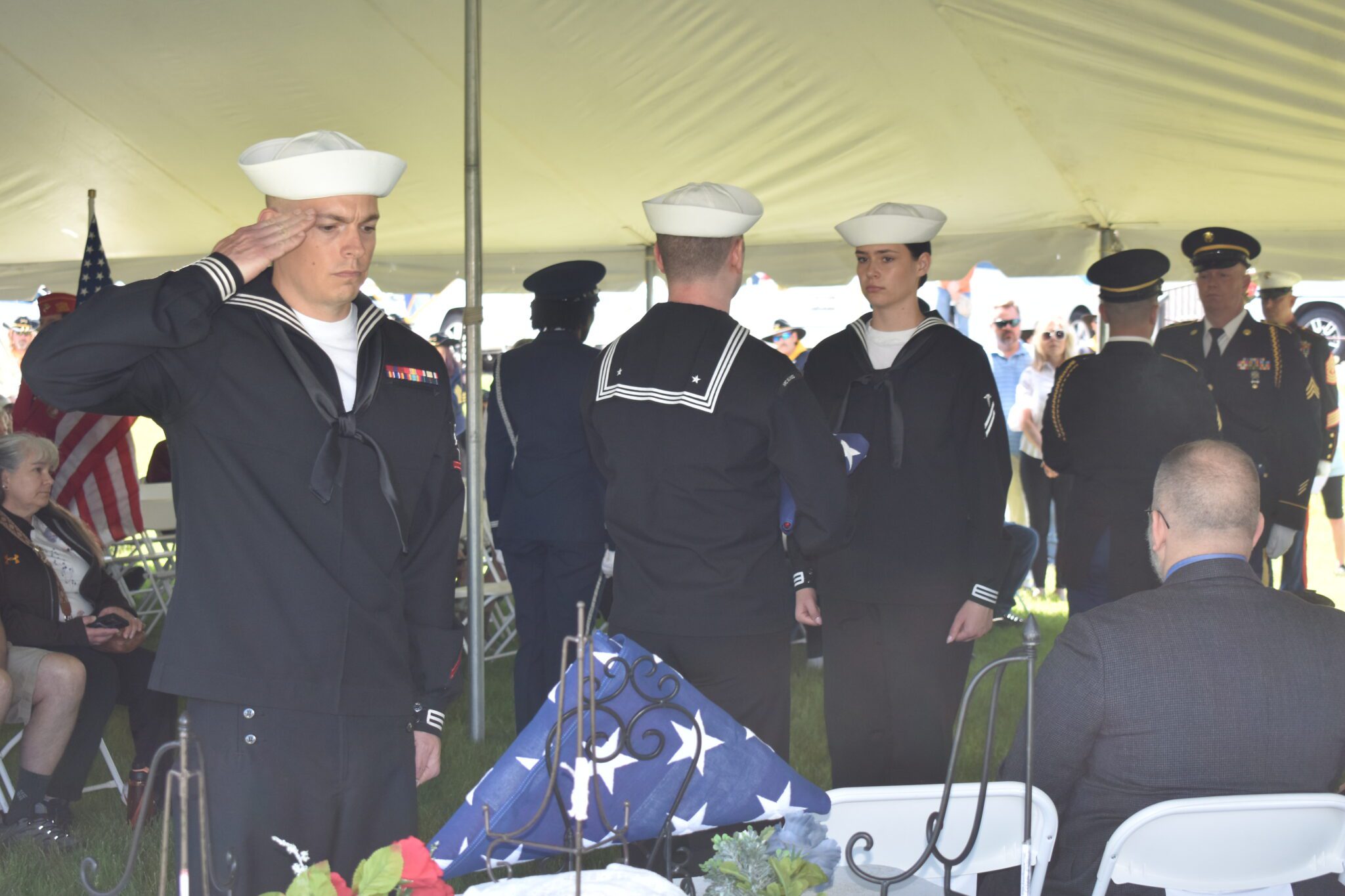 There were Military Honors presented by the U.S. Army, U.S. Air Force, U.S. Marine Corps & U.S. Navy; There was a 21 Gun Salute; TAPS was performed by SPC Waring, of the 67th Army Band and there was a release of Doves from Doves of Love to honor the fallen.