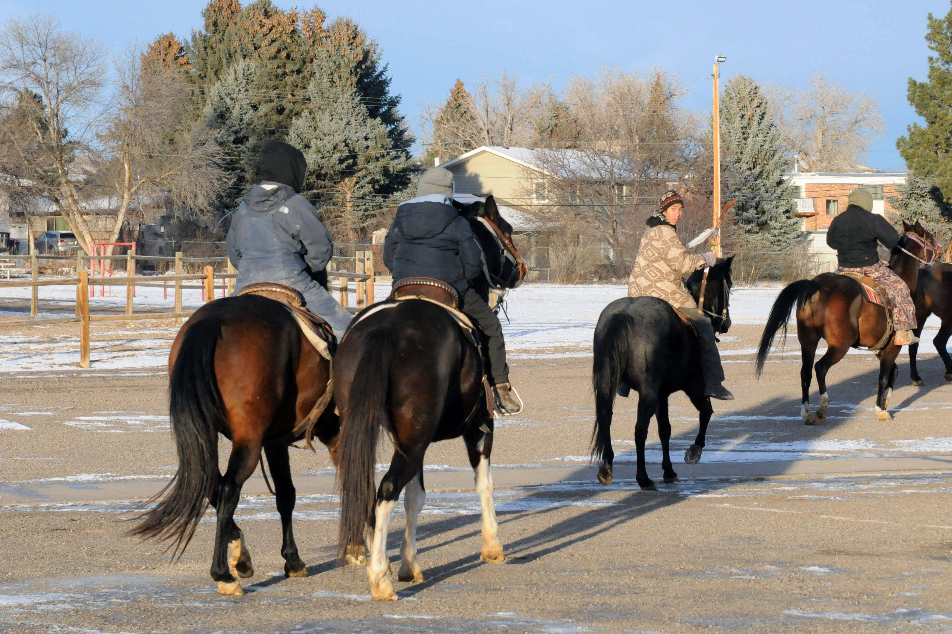 Young Native American riders rode 18 miles from Sheridan to the Fetterman Battlefield in commemoration of the battle’s anniversary for the first time Sunday, Dec. 21, 2025. The riders left the Sheridan County fairgrounds at approximately 8:30 a.m. and arrived at the battlefield site in a little more than six hours.