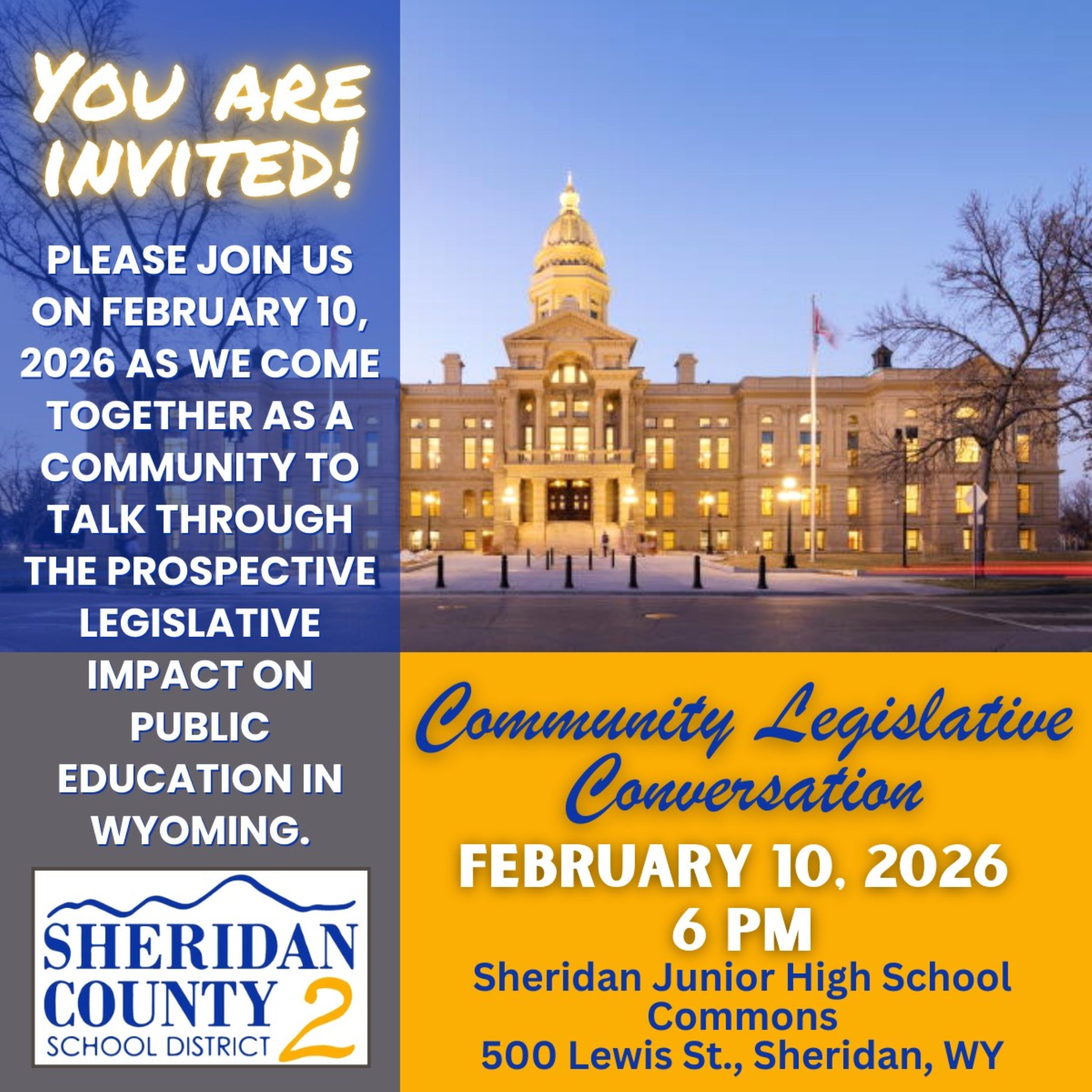 On February 10, Sheridan County School District #2, invites the community to a conversation about prospective legislative impact on public schools in Wyoming.