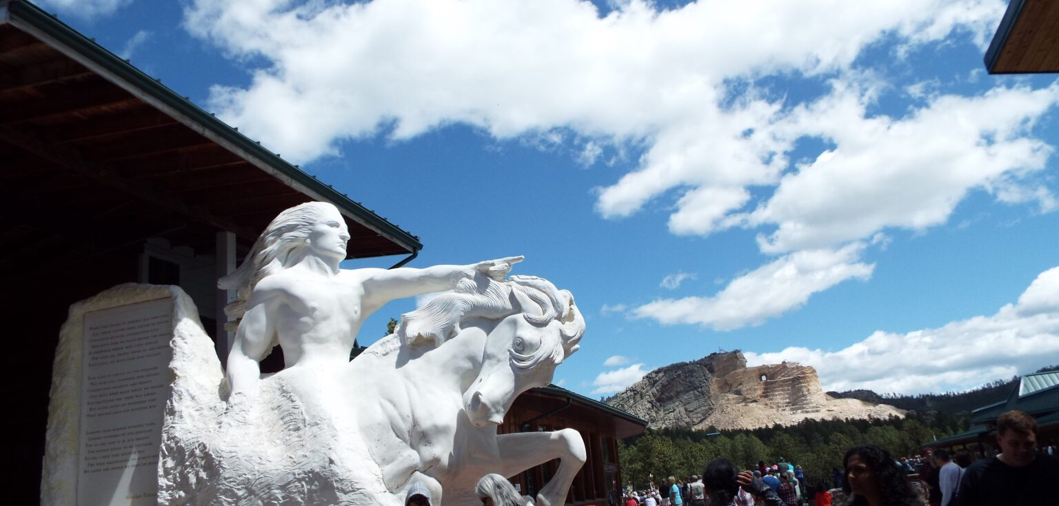 Feature photo: Sculpture of Crazy Horse at the Crazy Horse Memorial between Custer and Hill City, South Dakota to honor Crazy Horse. This is a model of what will be carved on Crazy Horse Mountain in the background.