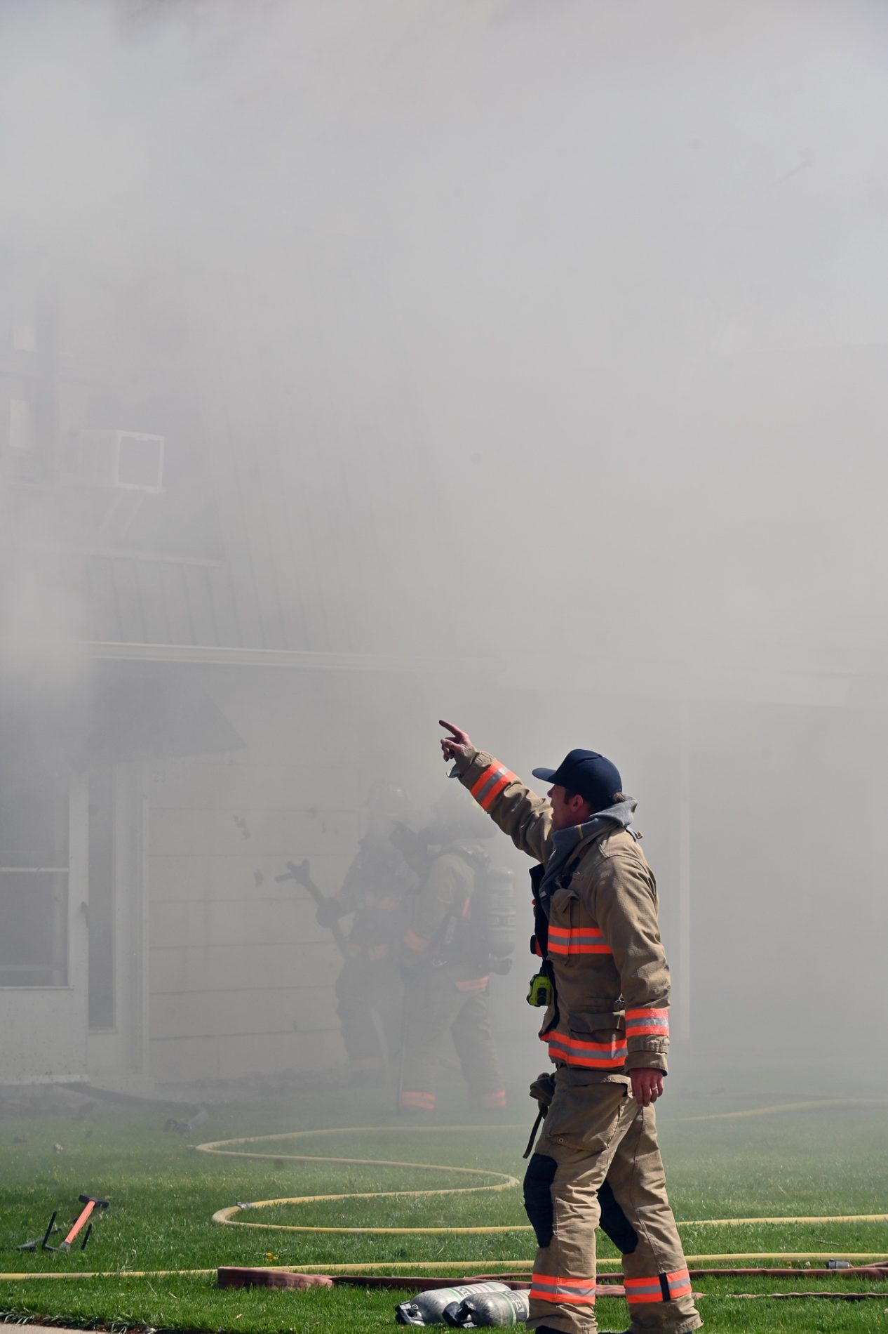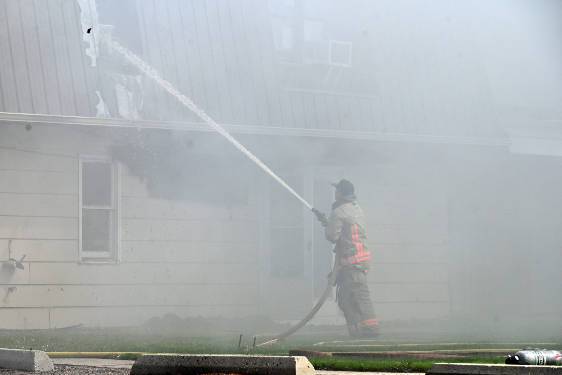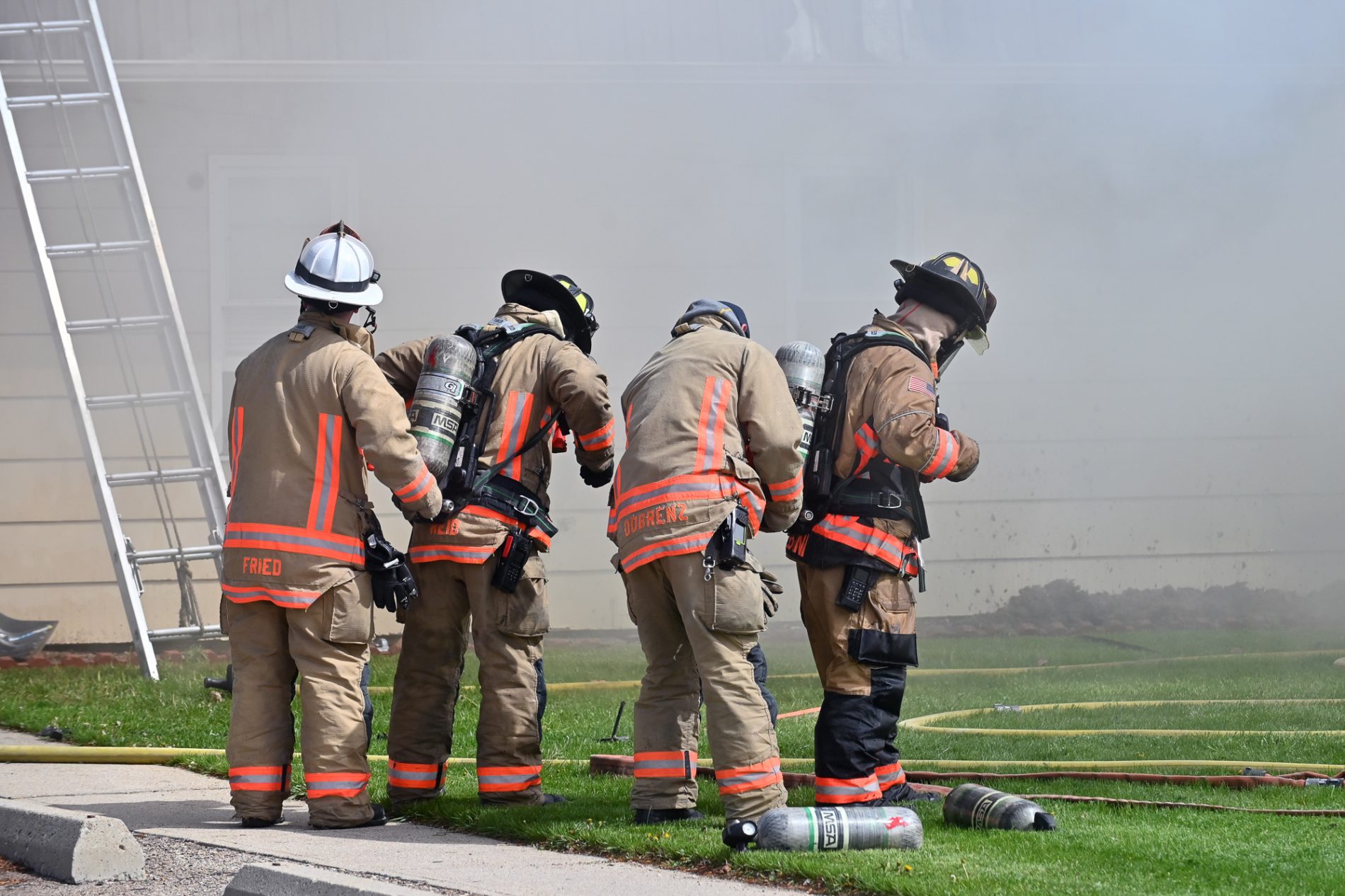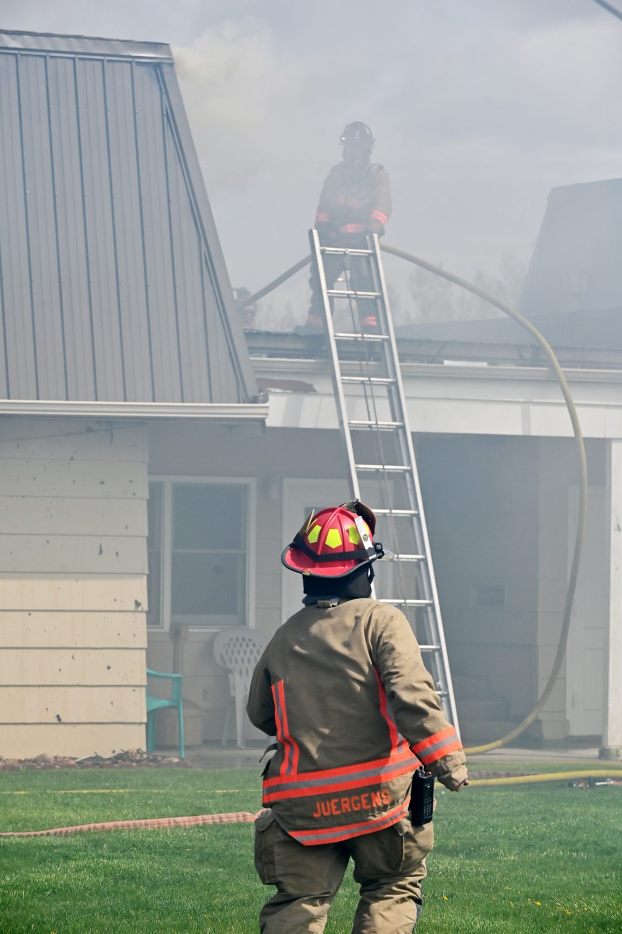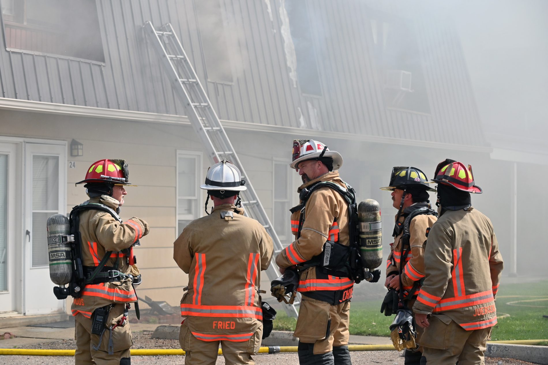 Sheridan-Fire Rescue and Goose Valley firefighters teamed up to knock down a structure fire the Hillside Manor apartment complex at the intersection of 11th Street and North Main Street Thursday, April 23, 2026. The SF-R Tower truck was also dispatched. The winds hindered fighting the fire. One person was attended at the scene.