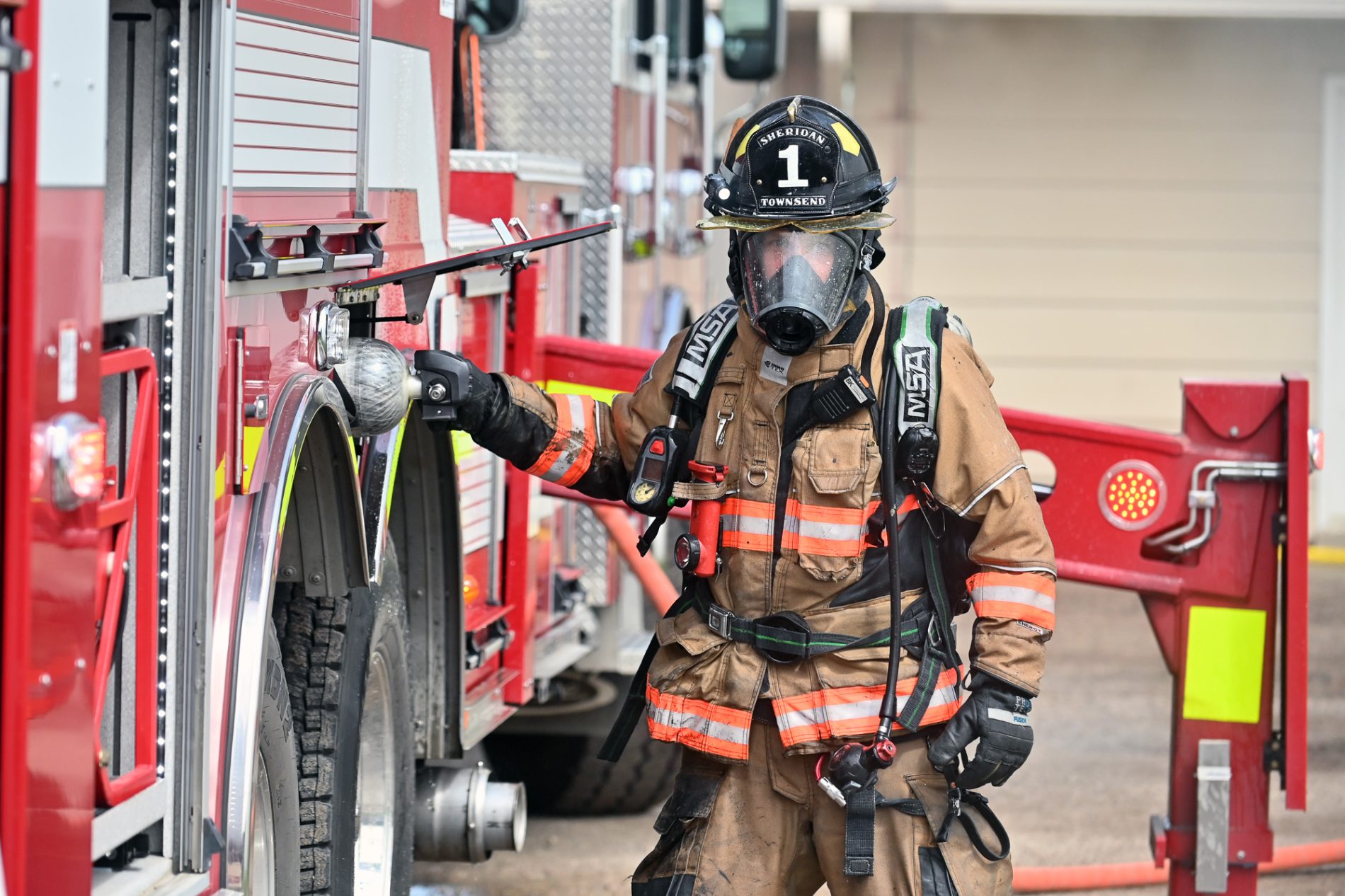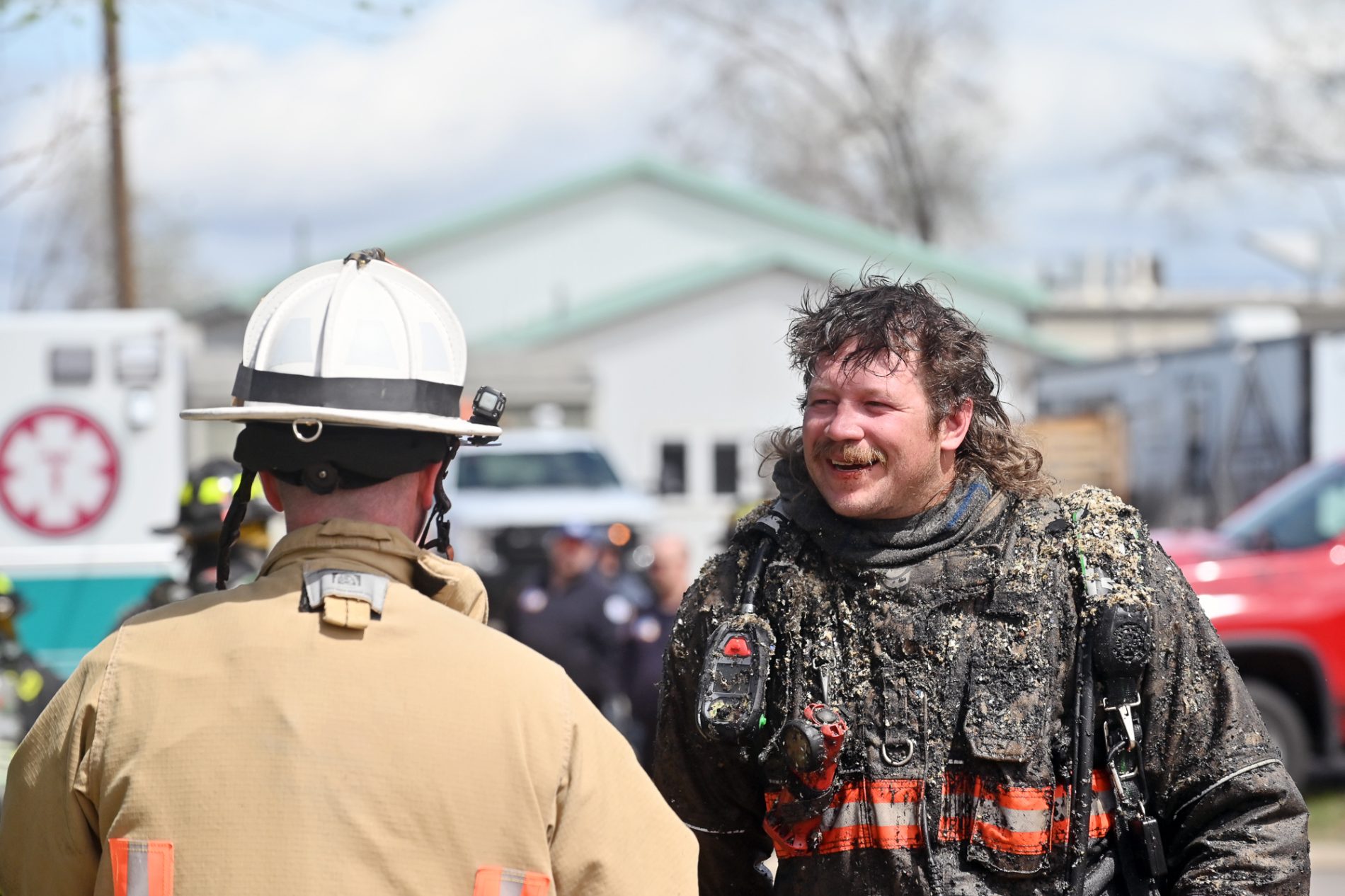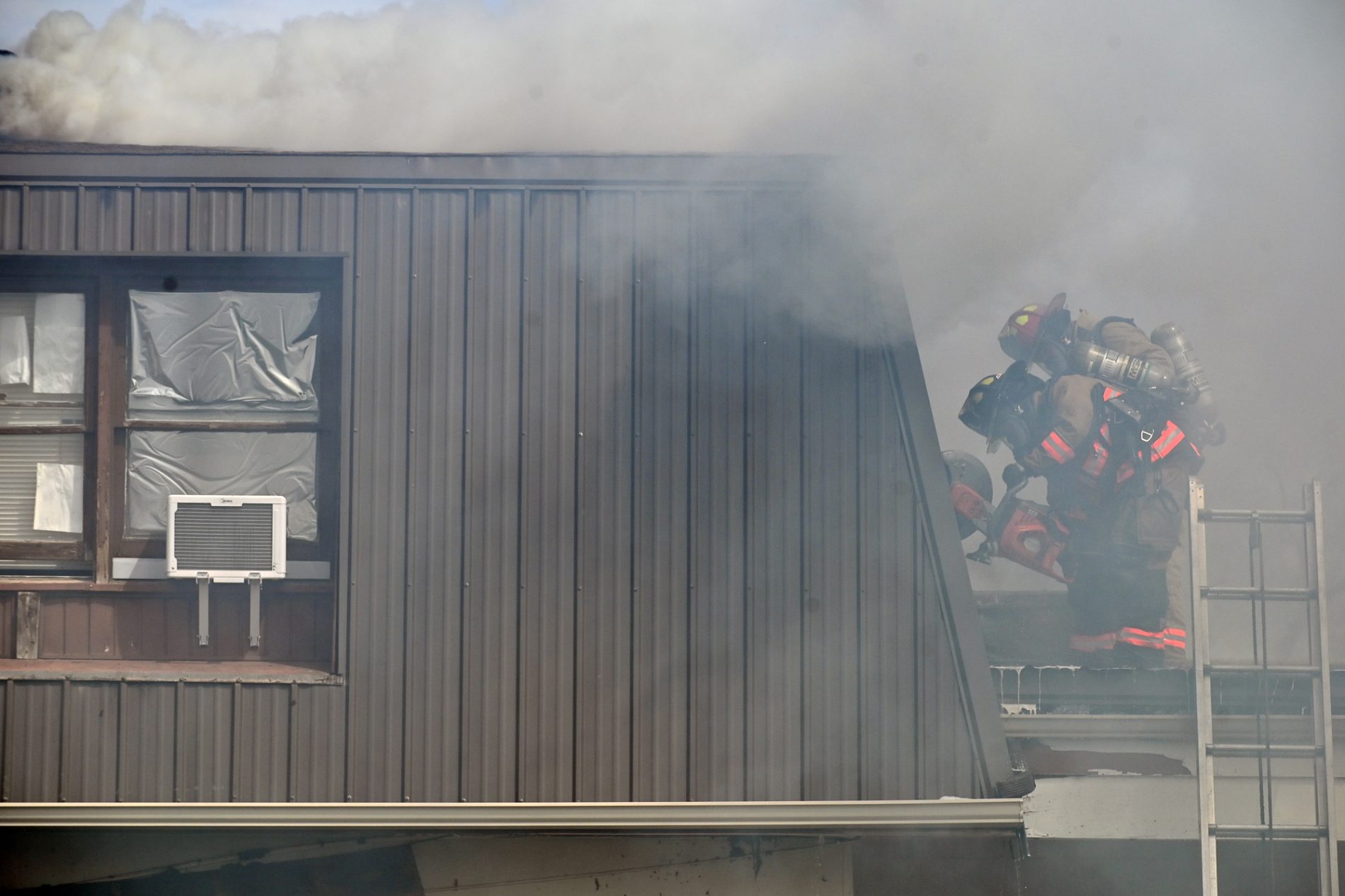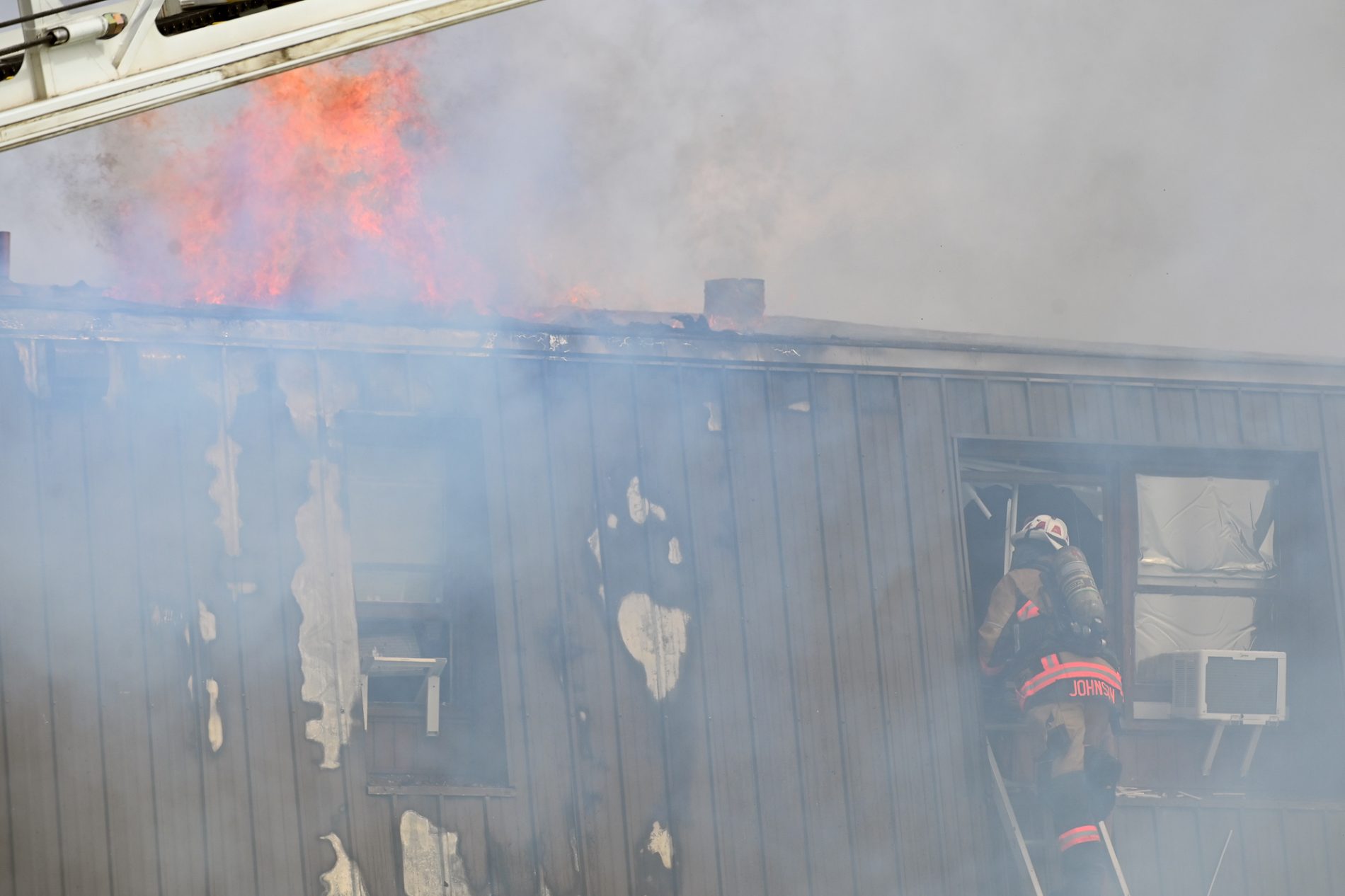 Sheridan-Fire Rescue and Goose Valley firefighters teamed up to knock down a structure fire the Hillside Manor apartment complex at the intersection of 11th Street and North Main Street Thursday, April 23, 2026. The SF-R Tower truck was also dispatched. The winds hindered fighting the fire. One person was attended at the scene.
