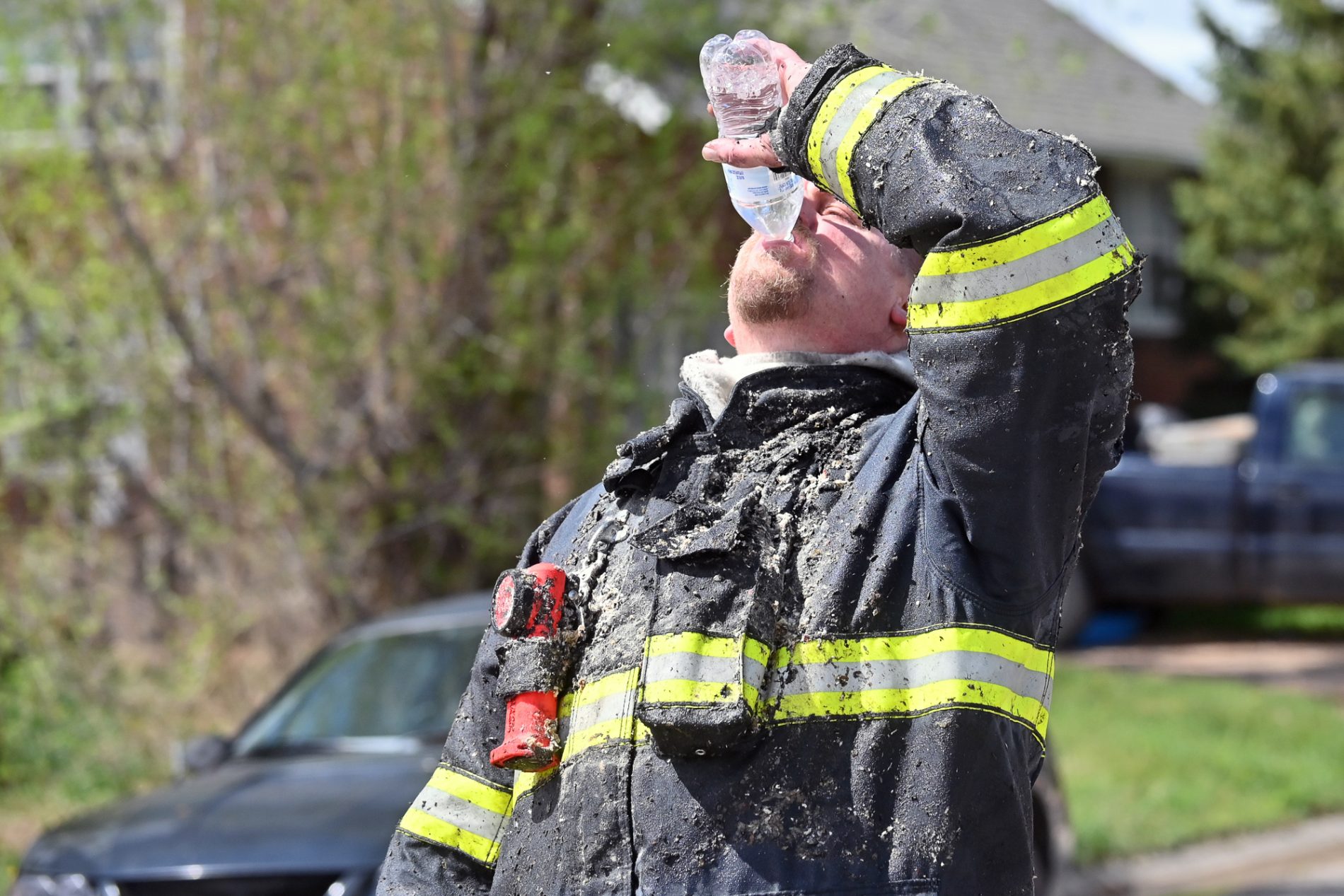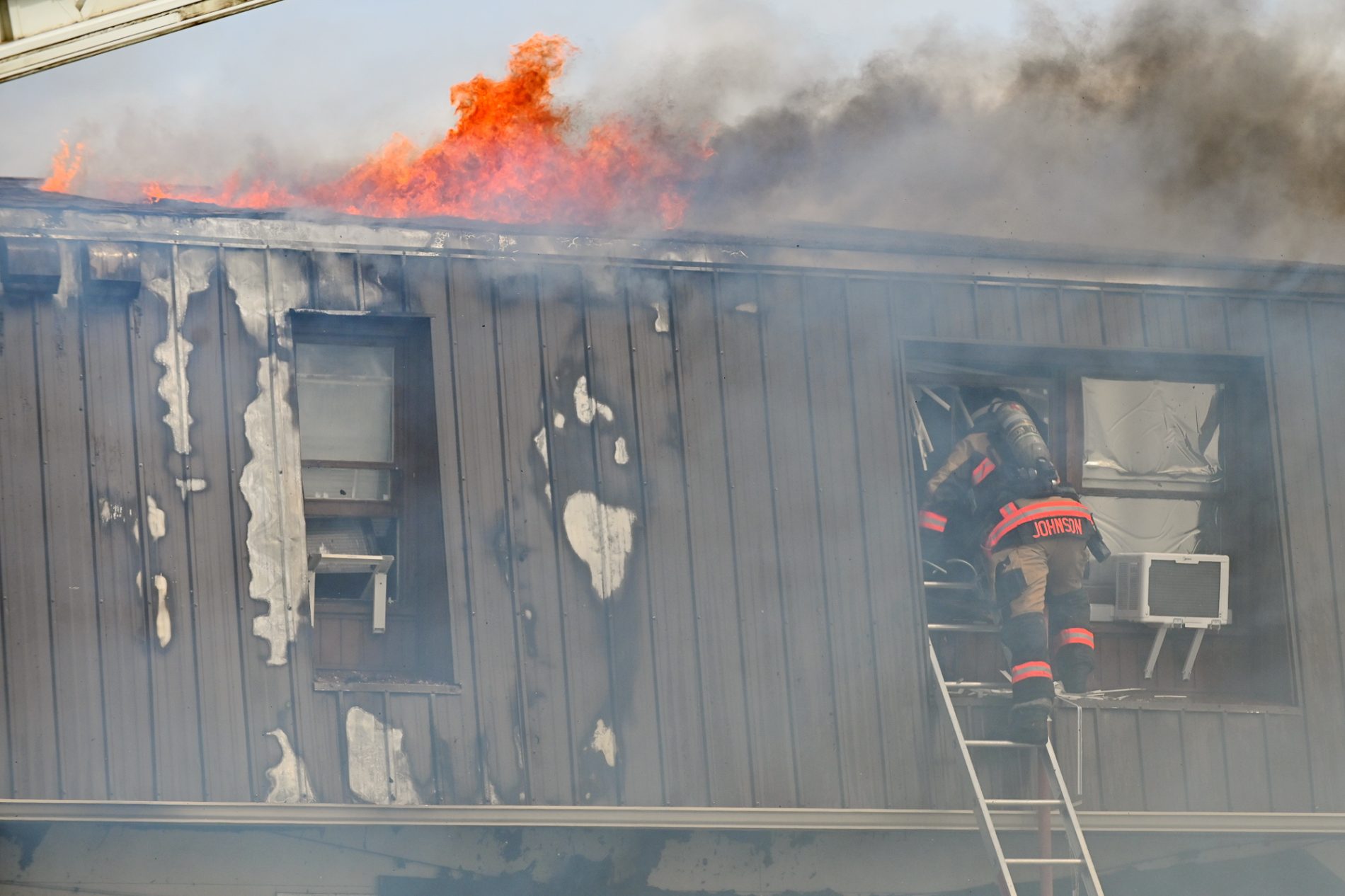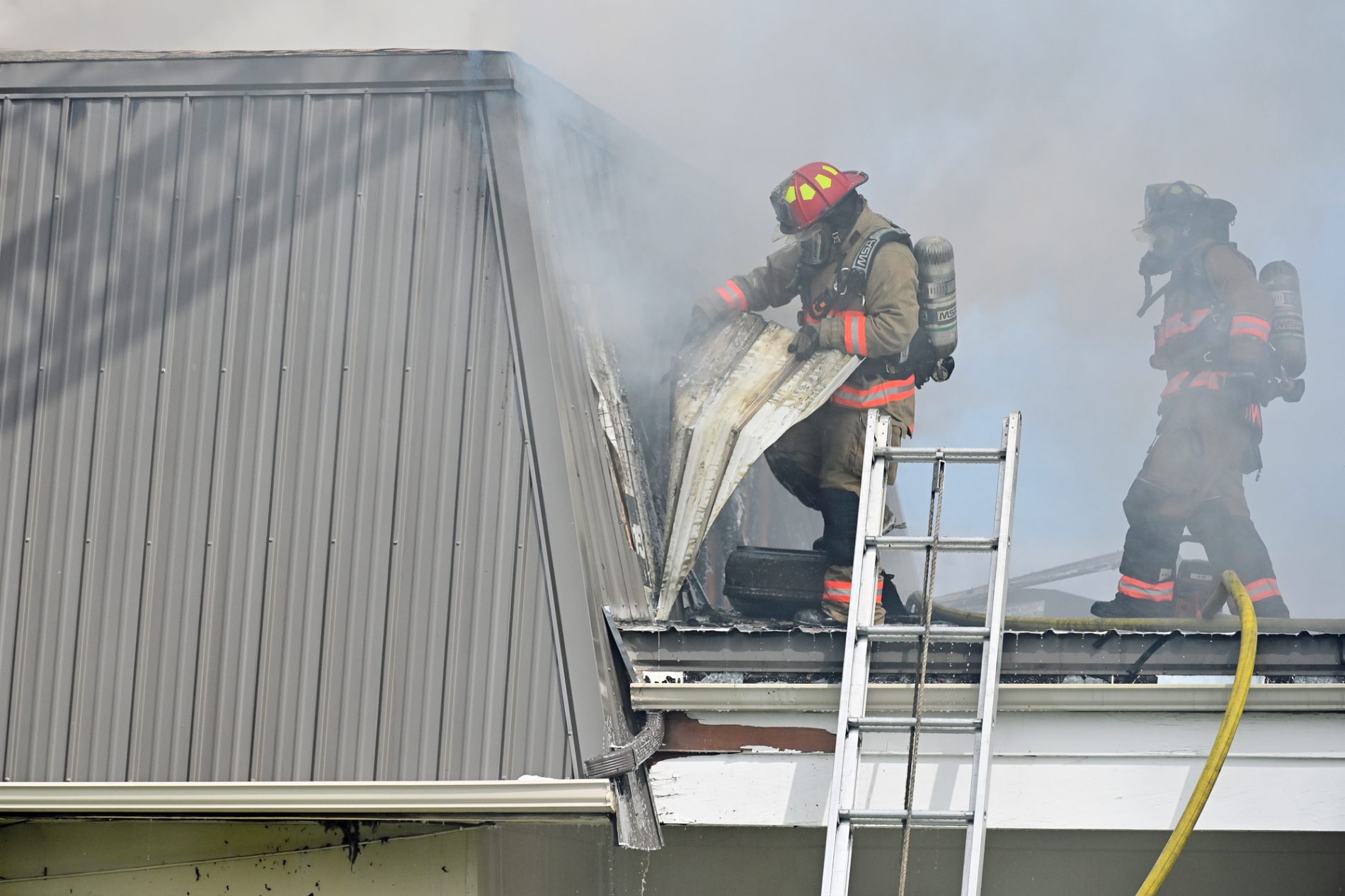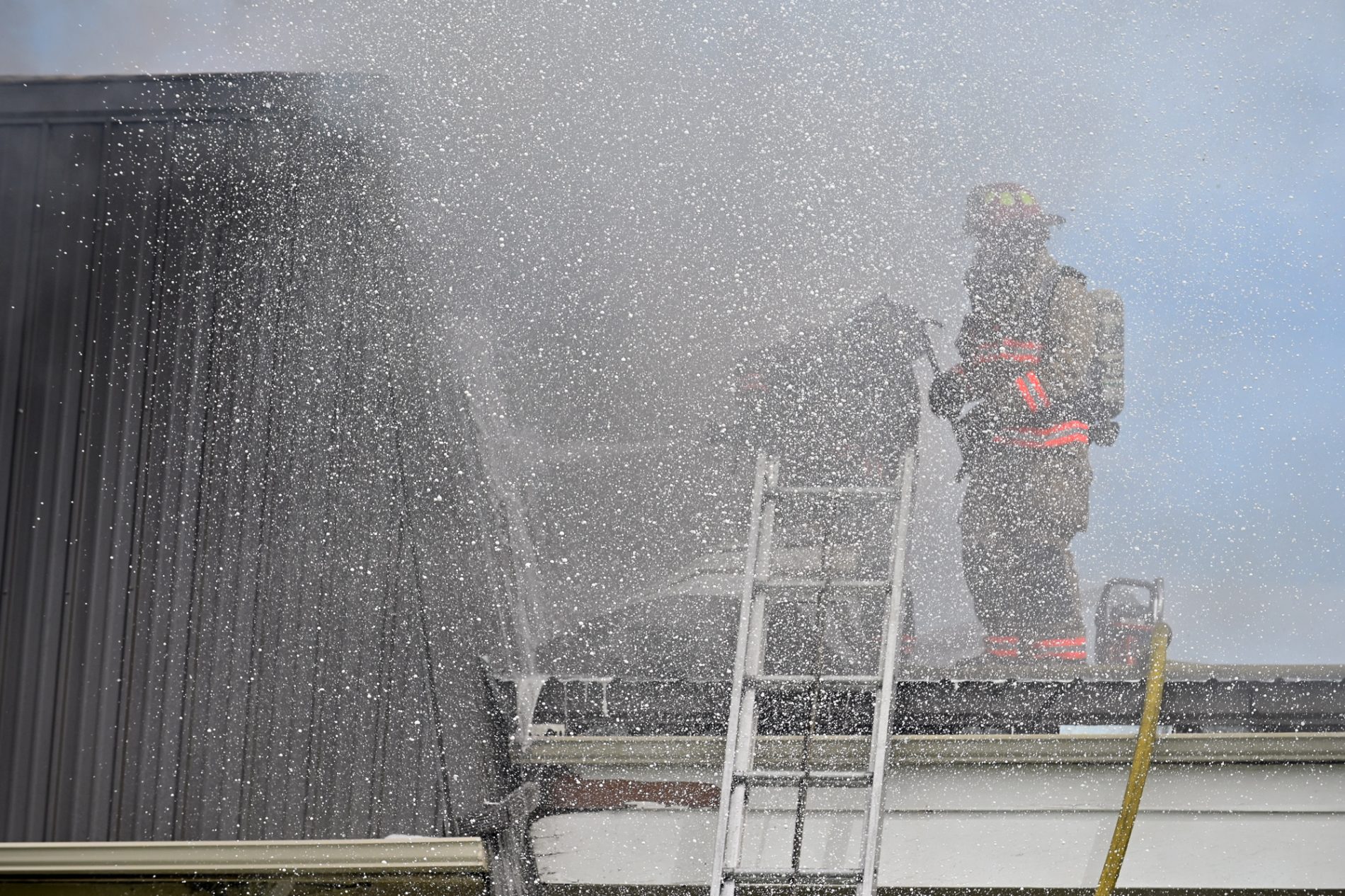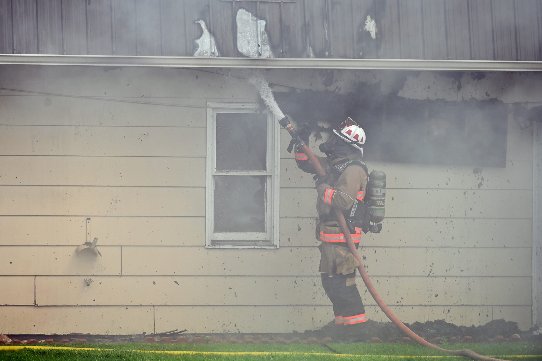 Sheridan-Fire Rescue and Goose Valley firefighters teamed up to knock down a structure fire the Hillside Manor apartment complex at the intersection of 11th Street and North Main Street Thursday, April 23, 2026. The SF-R Tower truck was also dispatched. The winds hindered fighting the fire. One person was attended at the scene.