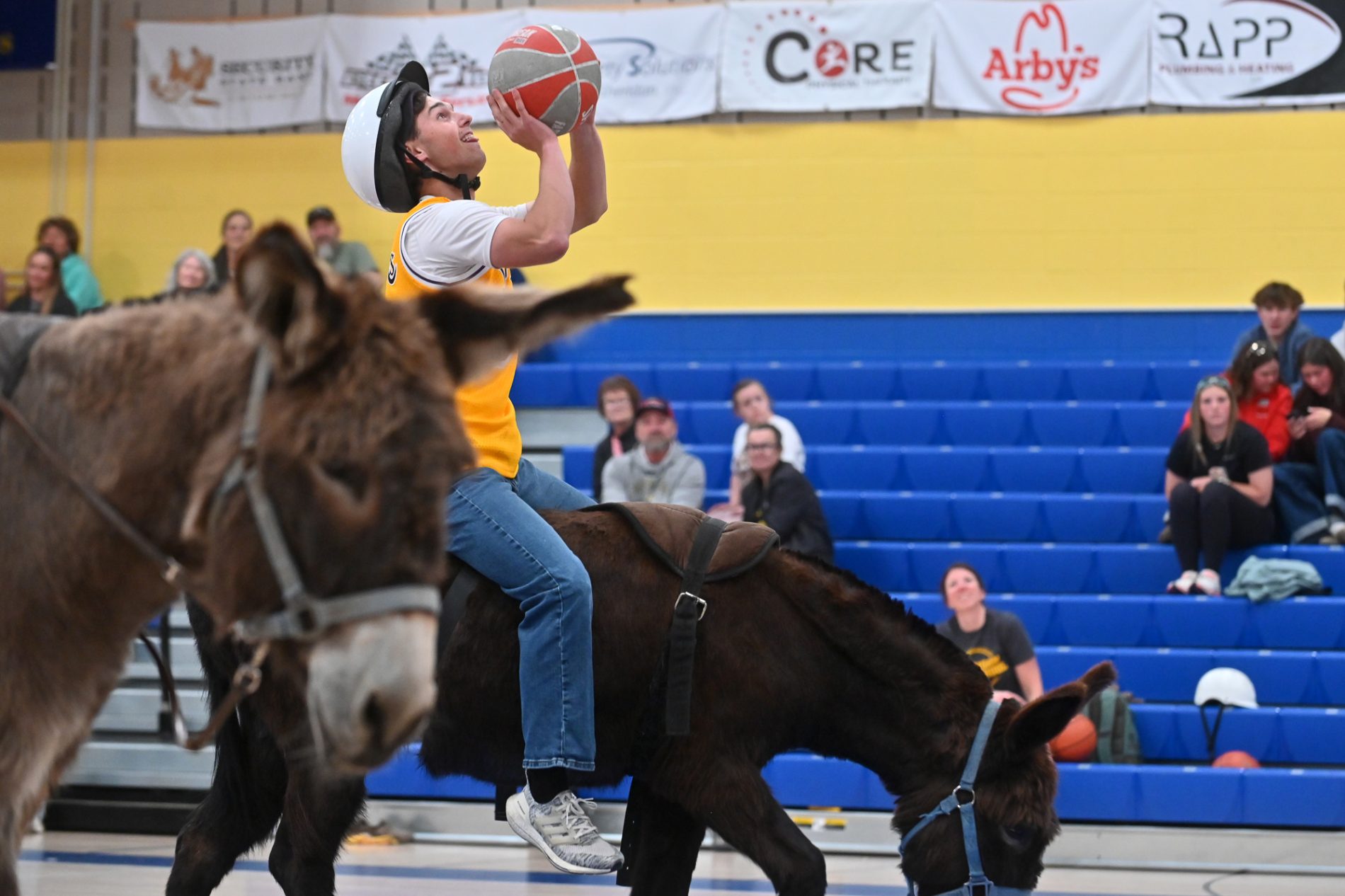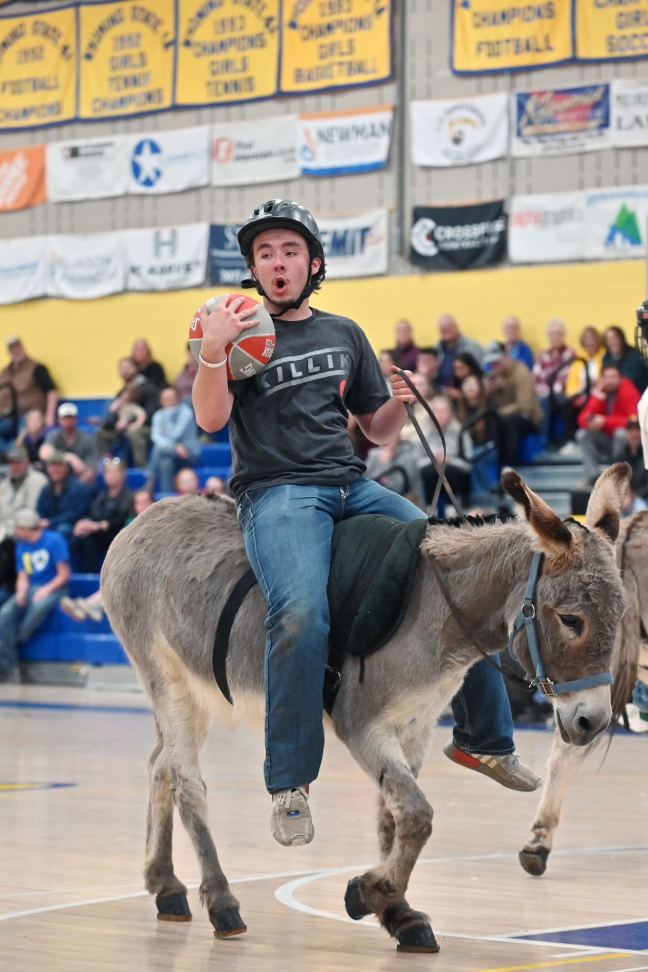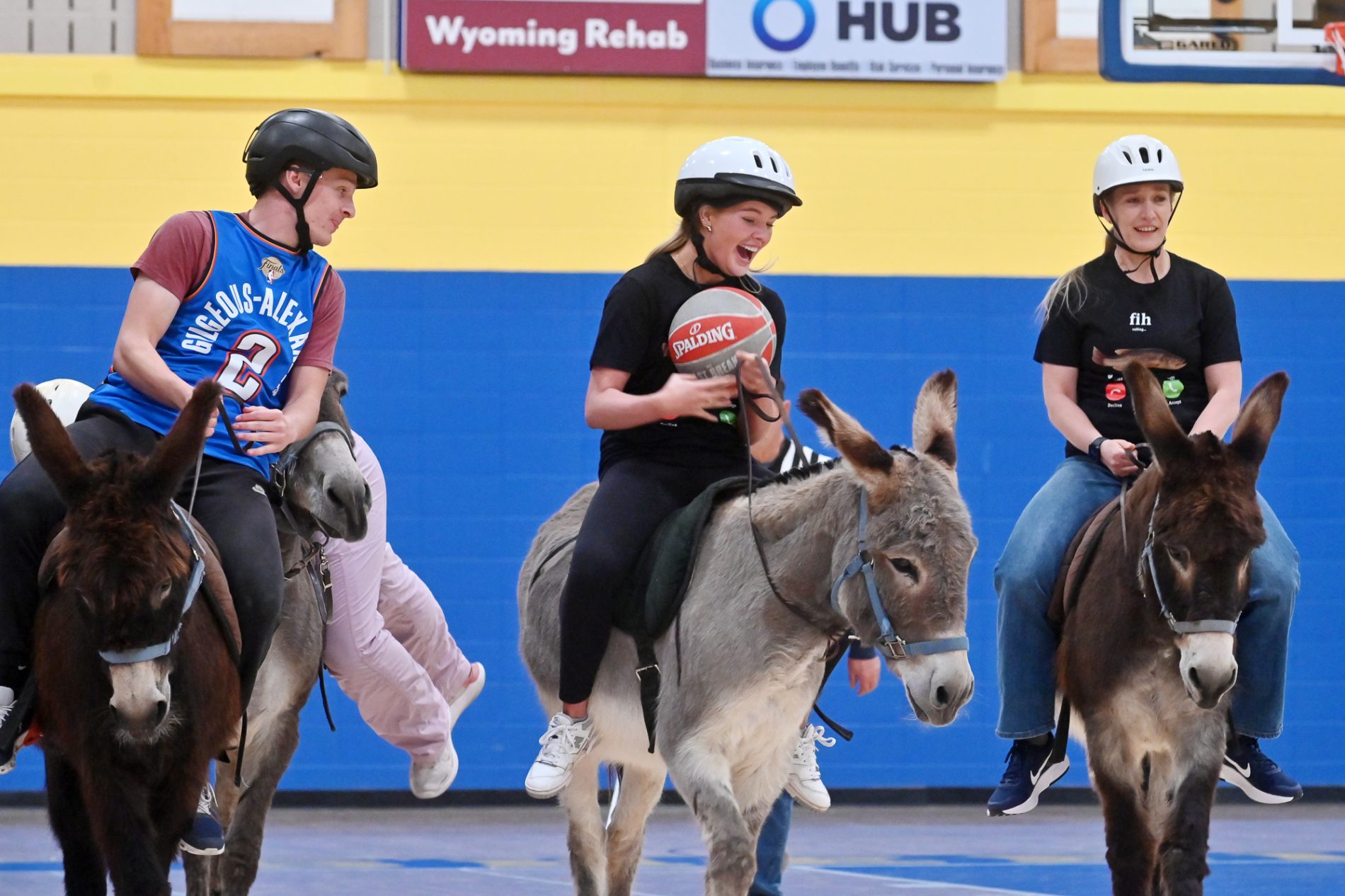 The John B. Kendrick FFA Chapter played Sheridan High School staff, teachers and student athletes in a donkey ball fundraiser Tuesday. The athletes who called themselves Sports won the championship 20-12 after being down 8-6 at halftime.