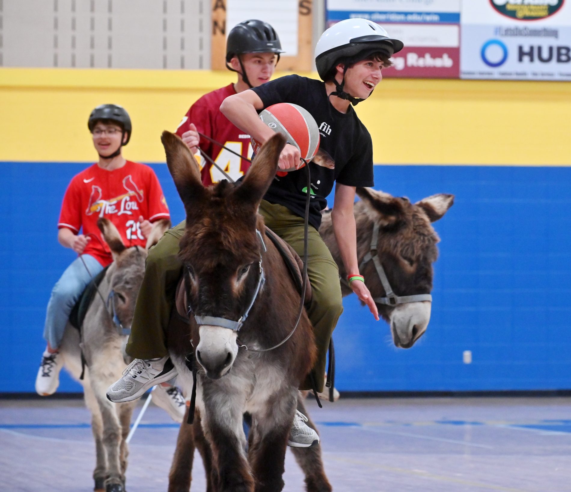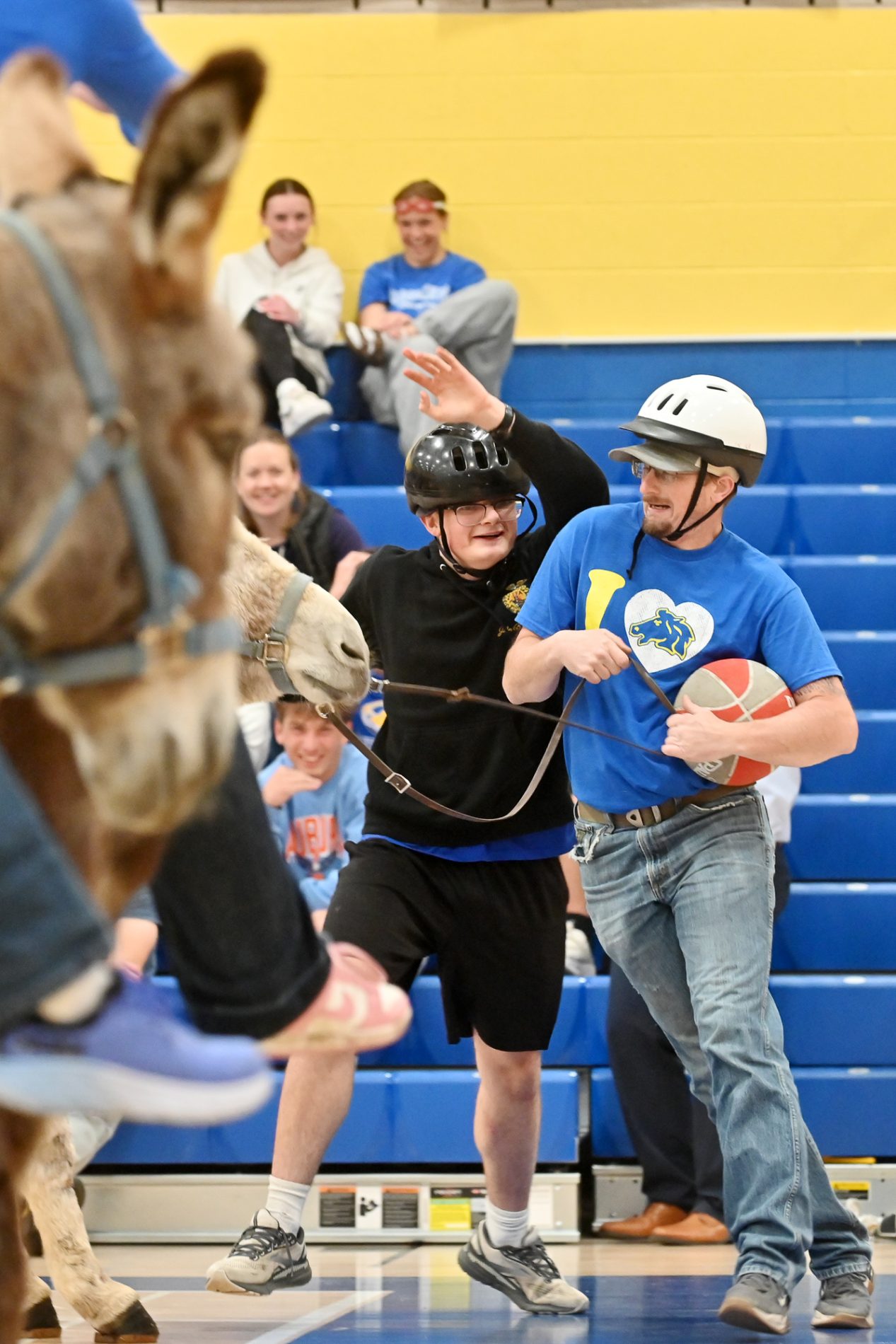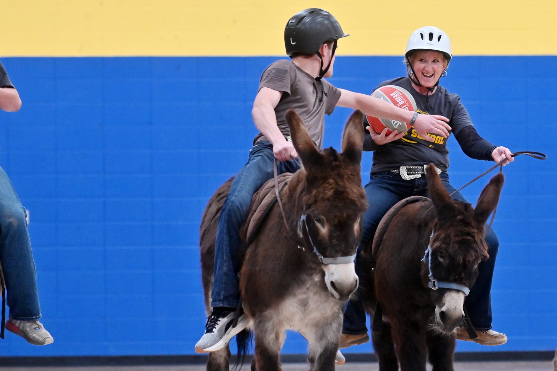 The John B. Kendrick FFA Chapter played Sheridan High School staff, teachers and student athletes in a donkey ball fundraiser Tuesday. The athletes who called themselves Sports won the championship 20-12 after being down 8-6 at halftime.