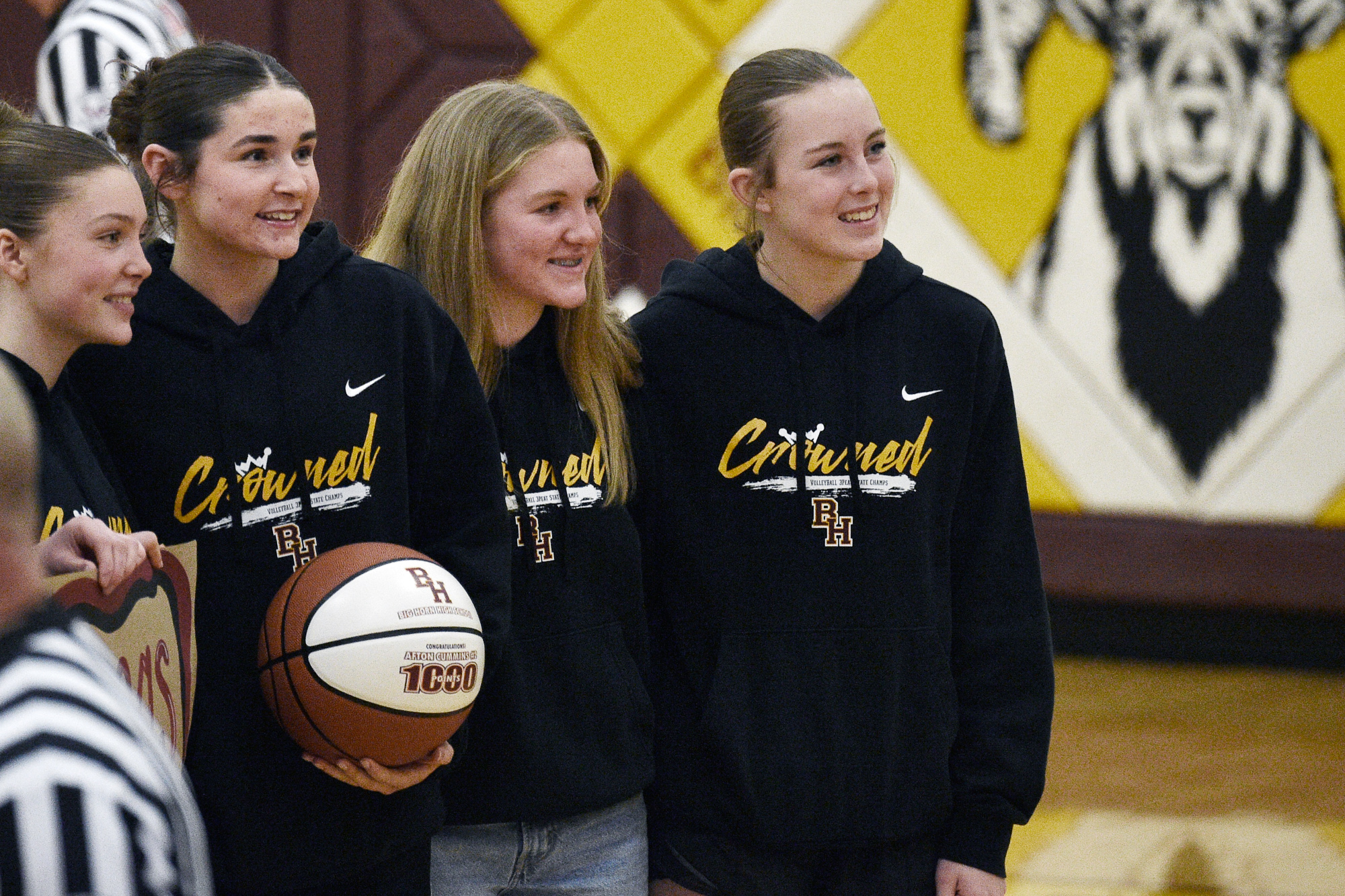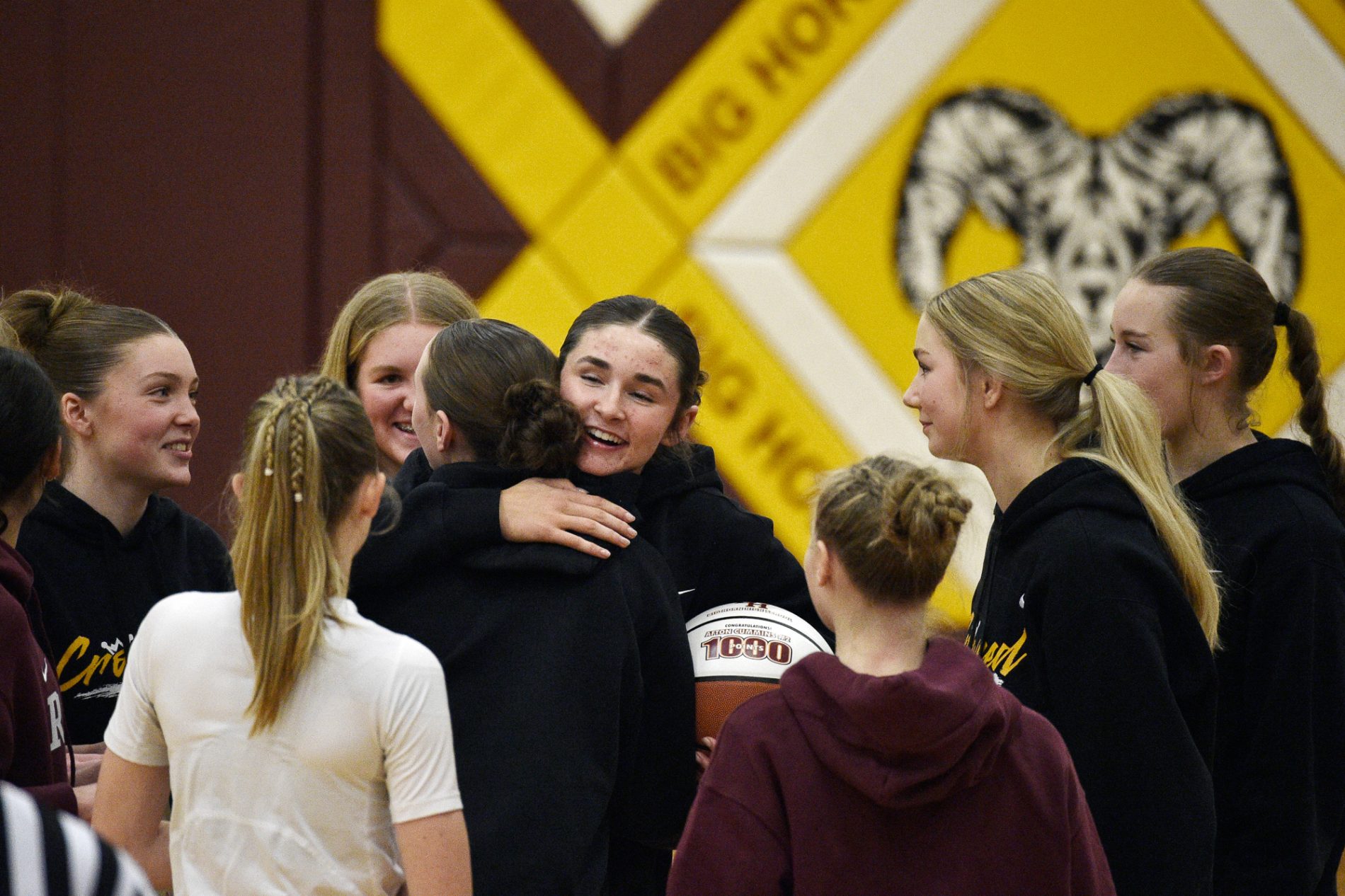Big Horn Lady Rams’ junior Afton Cummins was honored after the third quarter of the Rams game against Wright for scoring her 1,000th career point in the Lady Rams game against Wright earlier. She scored it in the fourth quarter.