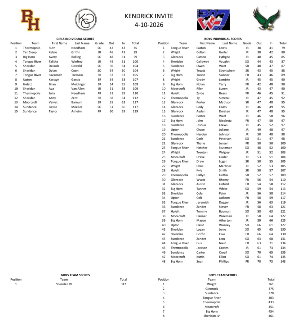 Sheridan/Johnson County High School Spring Golf Results: April 10, 2026