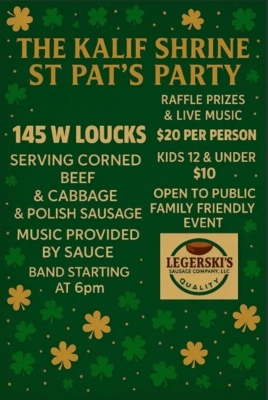 Members of the Kalif Shrine will host their annual St. Patrick’s Party at 6 p.m. Saturday, March 14 at the Kalif Shrine Center, located at 145...